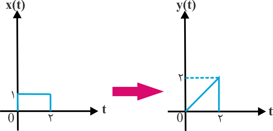مطابق شکل زیر بر روی یک سیستم خطی و تغییر ناپذیر با زمان (LTI) و علّی پیوسته یک آزمایش انجام شده است. خواص پایداری و حافظه را در مورد این سیستم بررسی کنید.