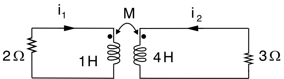 در شکل زیر اندوکتانس متقابل M چقدر باشد تا مدار مرتبه یک گردد؟ در این حالت فرکانس طبیعی مدار را بدست آورید .