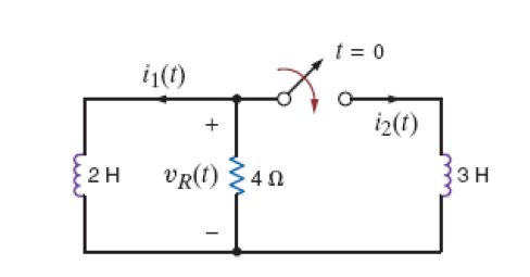 در شکل زیر جریان اولیه i1 و i2 به ترتیب 2A و 0A است.در t=0 کلید بسته می شود.