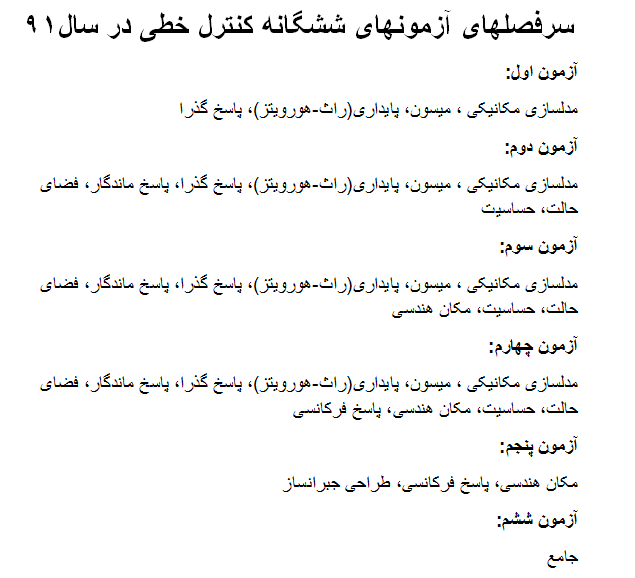 برگزاری آزمون محک 2 درس کنترل خطی در روز چهارشنبه