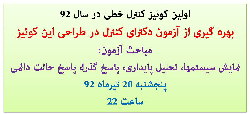 کوییز 1 کنترل خطی "اولین کوییز کنترل خطی در سال92 "